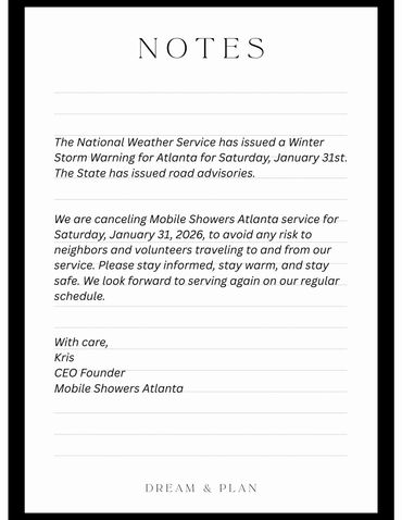 Right now, children, women, and men are sheltering at designated warming centers across metro Atlanta. Some centers do not have showers or tubs. Those families have not been able to bathe since the Winter Weather Storm was announced. Centers are expected to remain open into next week. We urgently need your donations to cover operating costs so we can serve these families with dignity and care.